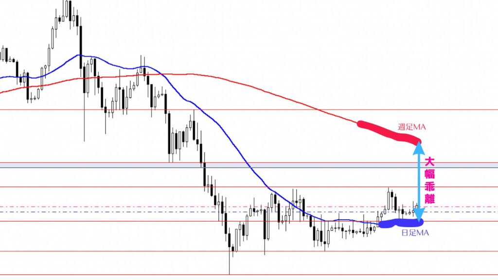 • 日足MAに対して4時間足MAが収束→拡散するポイント