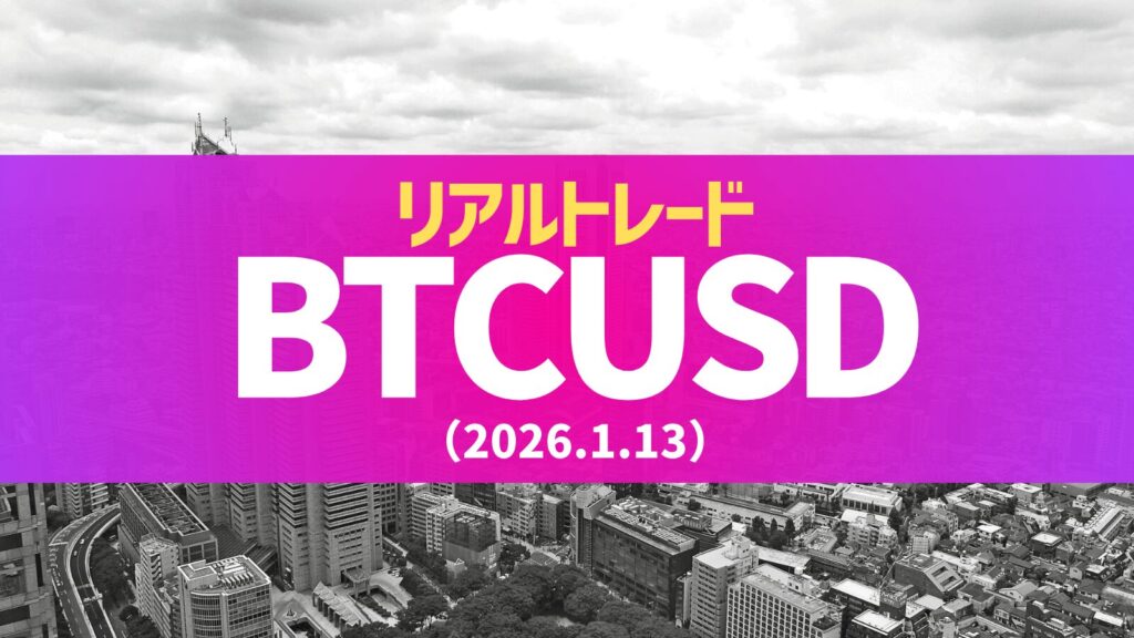 2026年1月13日のBTC/USD(ビットコインドル)のトレードについて、上位足相場環境の把握からトレード足への落とし込み、仕掛け・決済までを簡単に見ていきたいと思います。
