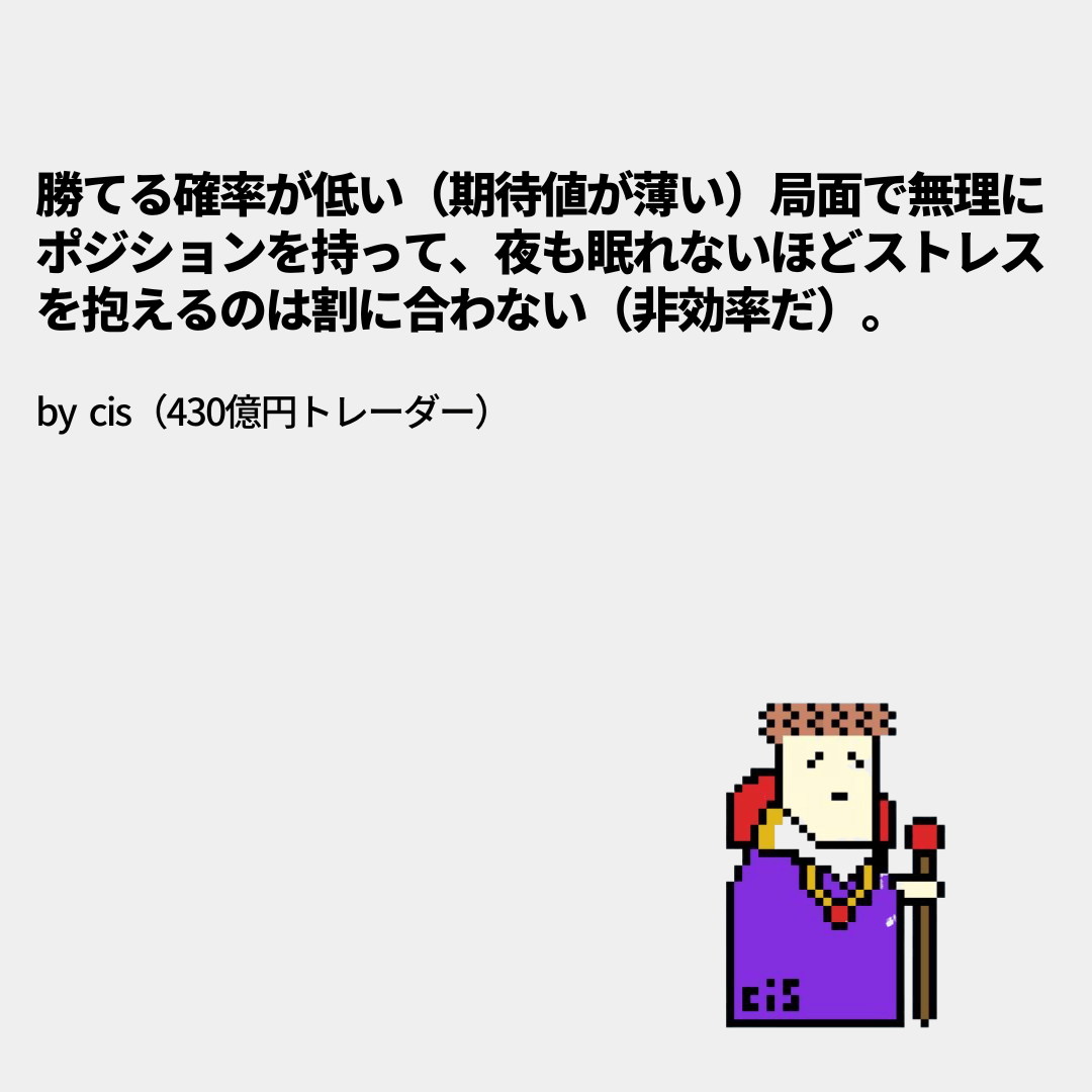 この「勝ち組トレーダー」に共通する鉄則を、冷徹なまでに極めたのが彼という存在です。