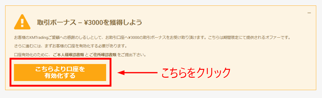 また、口座開設ボーナスも口座の有効化が完了しないと受け取ることができません