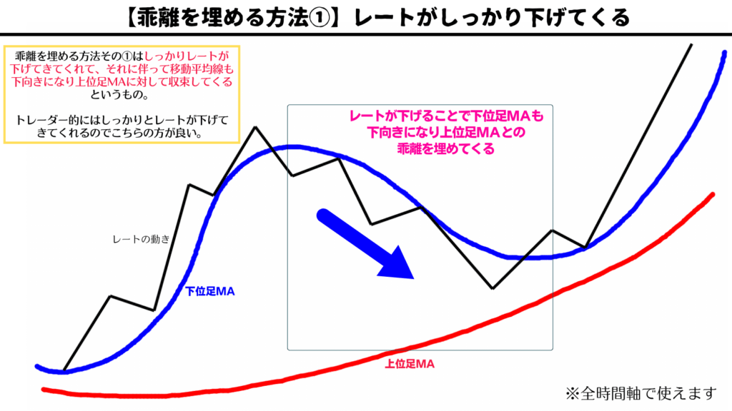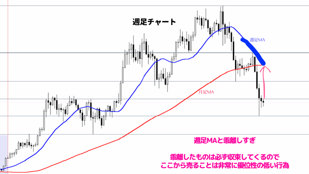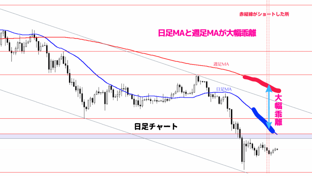日足MAと週足MA大幅乖離しているのでこの乖離を埋めるグランビルが働きやすい