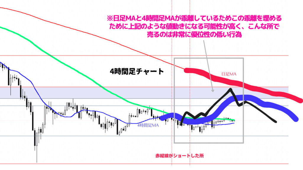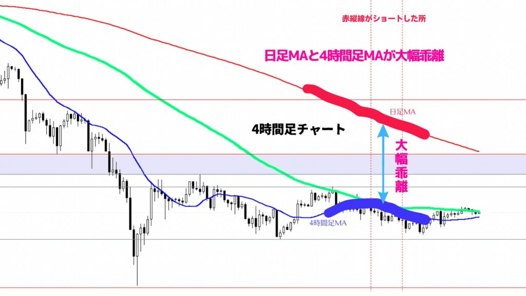 日足MAと4時間足MAも乖離してるのでこの乖離を埋めるグランビルが働きやすい