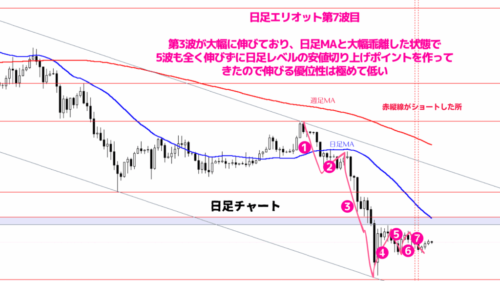 これらの点から、ここでショートしても下げる優位性は低いです。